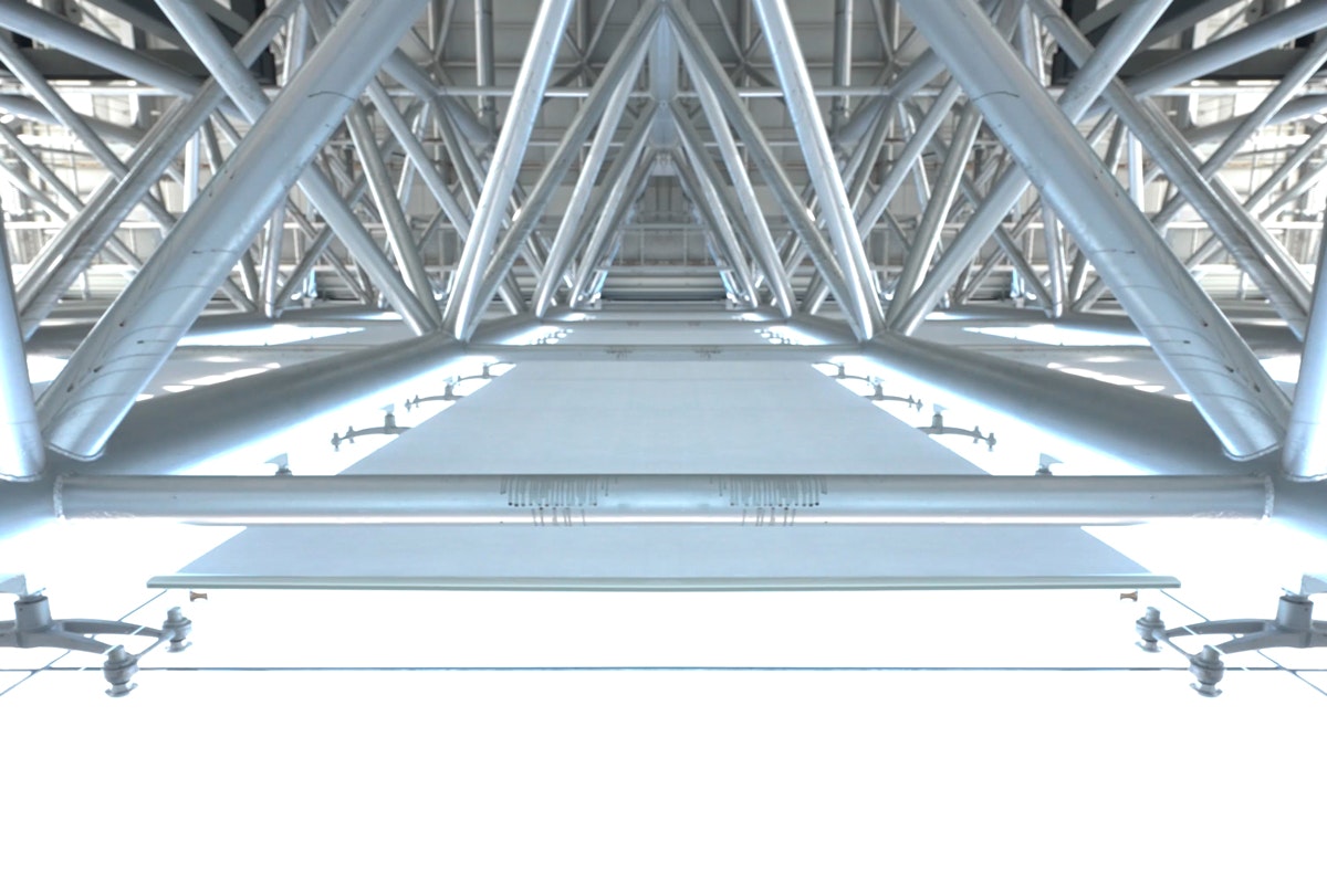 高さのあるガラス面全体を覆うことで、日射負荷を効果的に軽減し、均一な遮光環境をつくりだします。