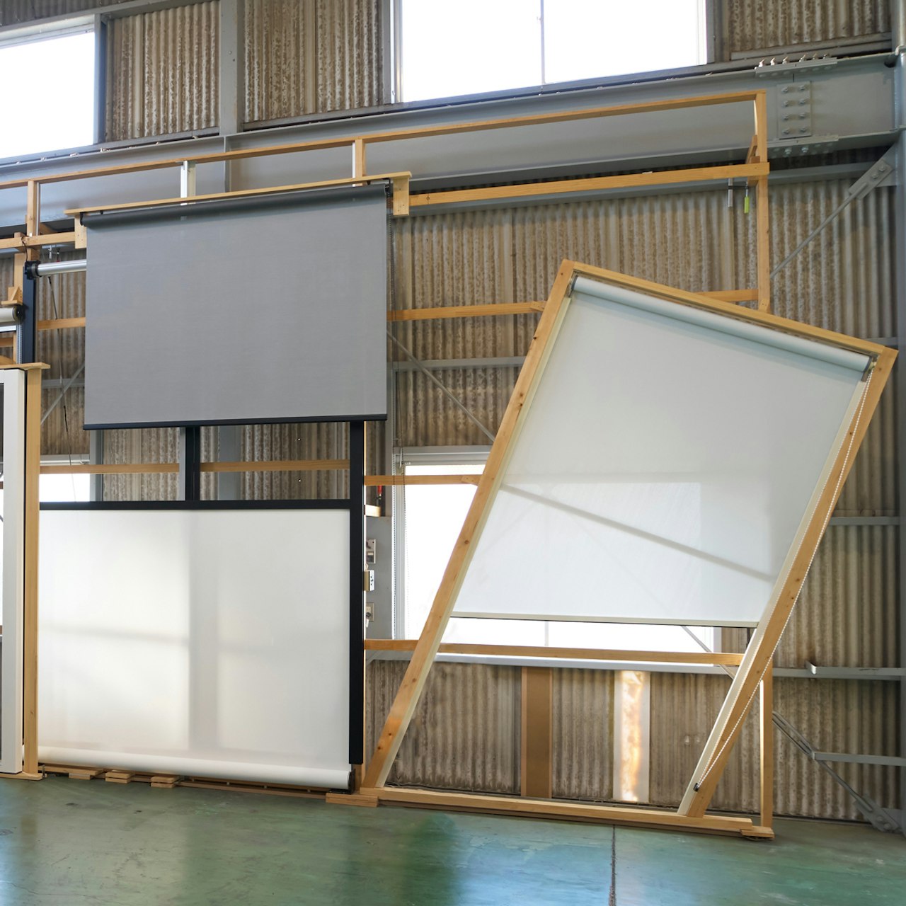 高所・傾斜面・異形台形など特殊な環境下での窓にも対応する遮光・電手動テンションシステム