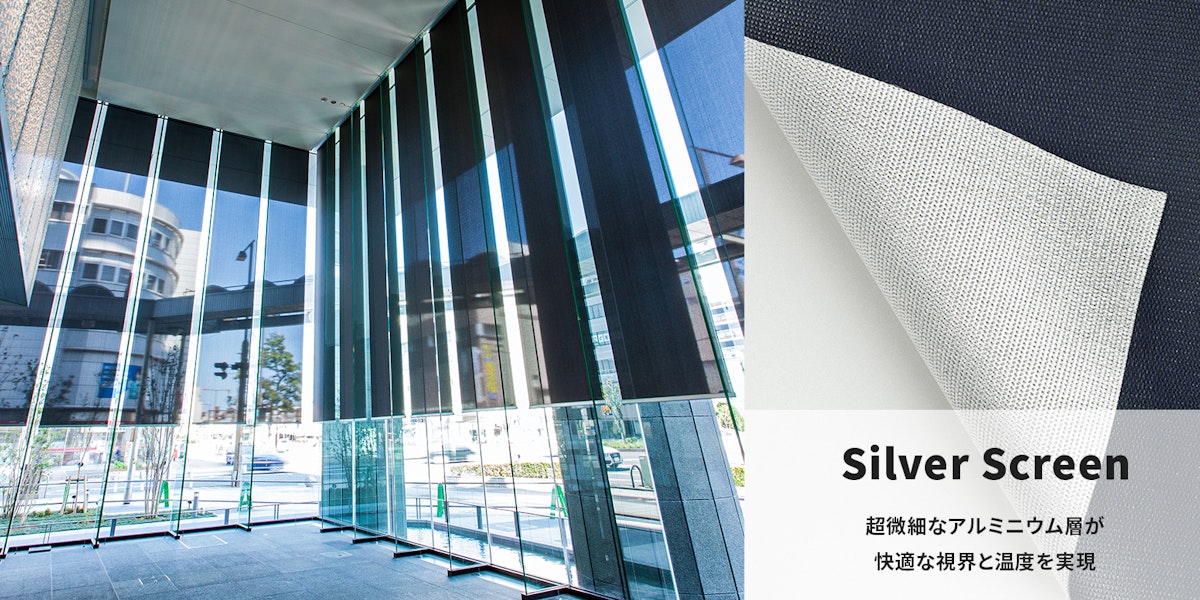 シルバースクリーンは、生地表面にきめ細かなアルミニウムコーティングを施し、光の反射と透過をコントロールしています。この構造により、まぶしい直射光は抑えながらも、柔らかな自然光は室内に取り入れることが可能です。昼間は照明を使わずに快適に過ごせるため、目にやさしく電気代の節約にも貢献。さらに外部からの視線は反射光で遮りつつ、内部からはクリアに外の景色を見渡せるため、快適性とプライバシーを両立します。